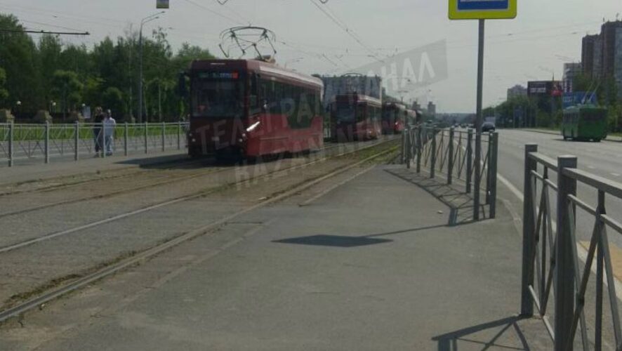 Трамваи встали на проспекте Ямашева у парка Победы
