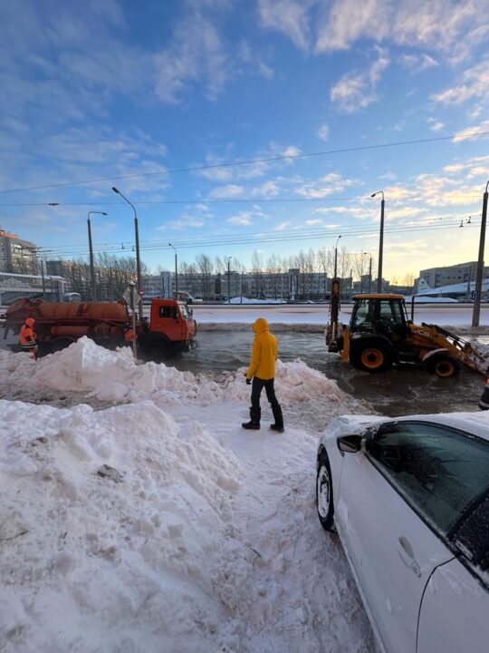 В управлении объяснили, что авария произошла на водопроводной сети, которая была построена в 1994 году. Сейчас на месте аварии работает сразу три аварийных бригады и 16 единиц спецтехники.