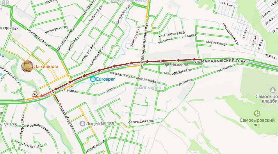 Согласно данным сервиса, на этом участке дороги проводят дорожные работы. Затор начинается недалеко от Дорожной и заканчивается ближе к Большой Красной.