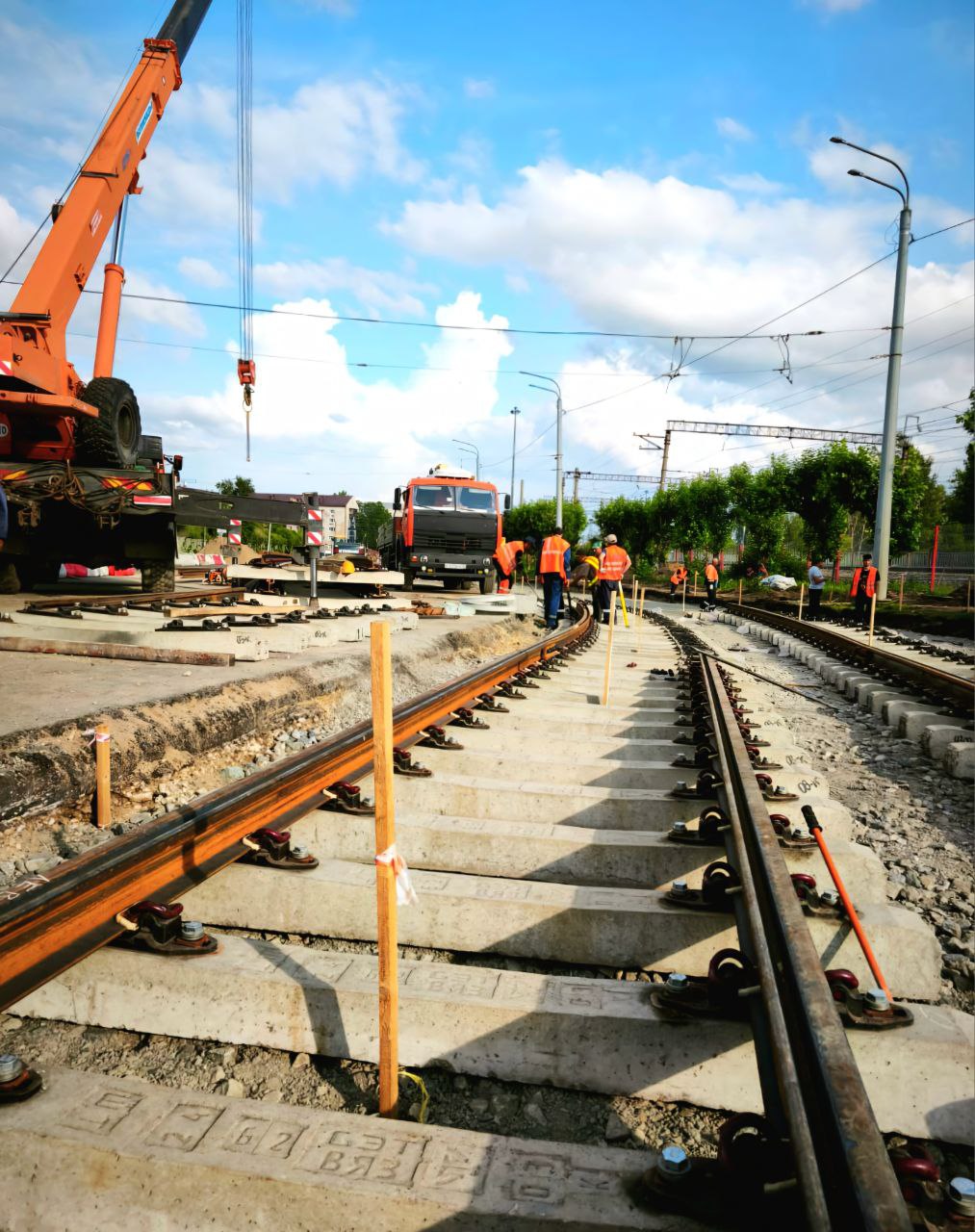 За время ремонта здесь появилось 434 метра новых трамвайных путей. Строители установили более 700 железобетонных шпал, уложили 70 рельсов и соединили их в 54 стыках специальными накладками. Весь проложенный участок уже поднят на нужную высоту и тщательно утрамбован.