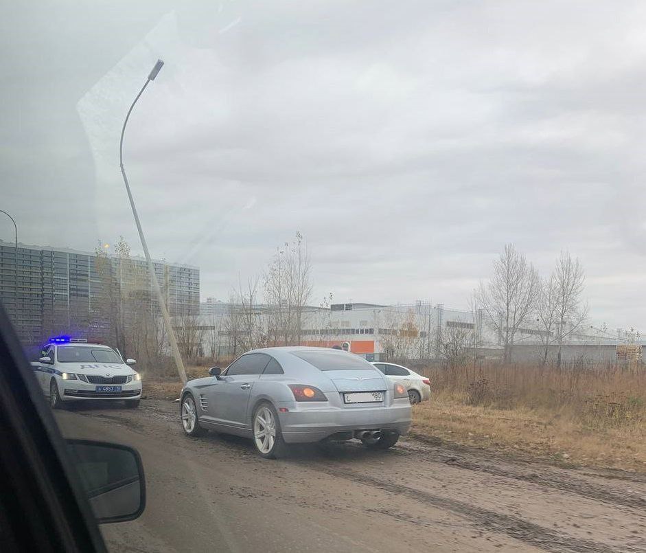 В результате столкновения осветительная конструкция получила серьезный наклон, а автомобиль, отброшенный на обочину, оказался значительно поврежден.