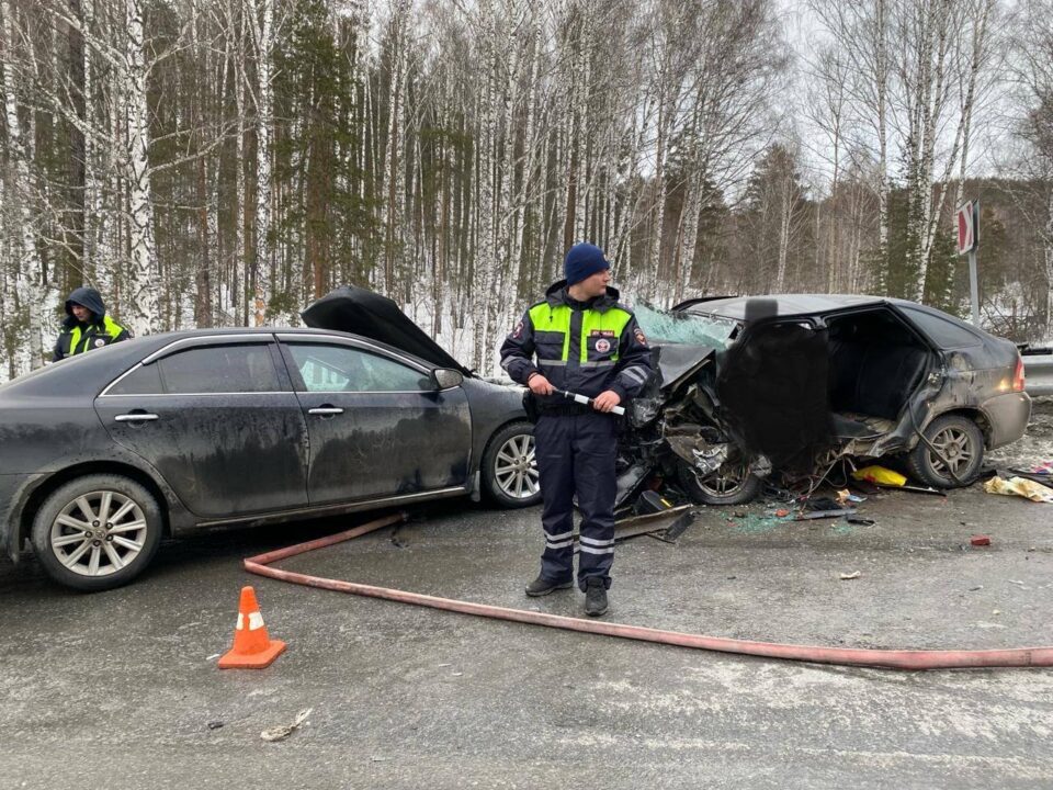 Смертельное ДТП произошло на 13 километре автодороги Миасс — Златоуст. Предварительно, водитель Toyota Camry не справился с управлением и вылетел на встречную полосу, где столкнулся с «Ладой».