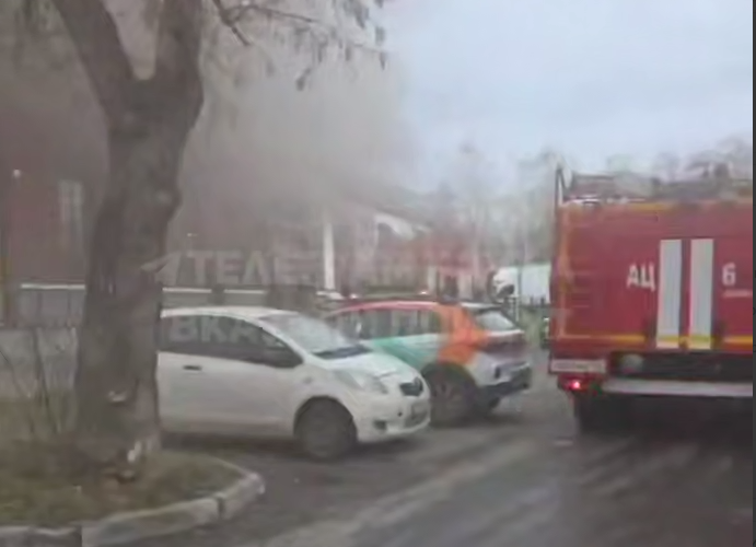 На видео видно, как из окон зала валит густой черный дым. На месте работают несколько пожарных рассчетов.