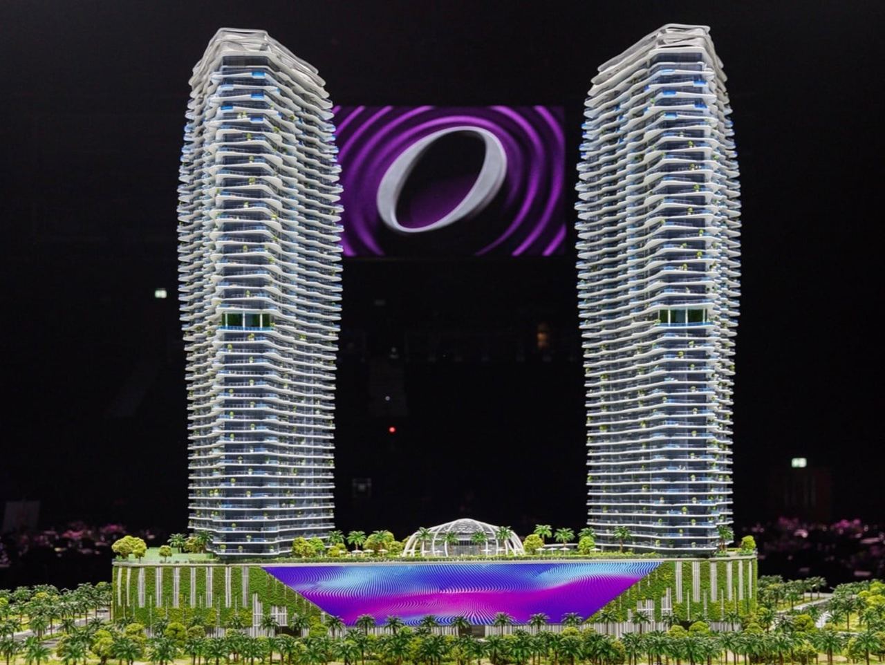 Проект включает два высотных здания, объединенных самой большой в регионе лагуной на стилобате, и предлагает различные варианты жилья: от студий до трехкомнатных квартир, дуплексов и пентхаусов.