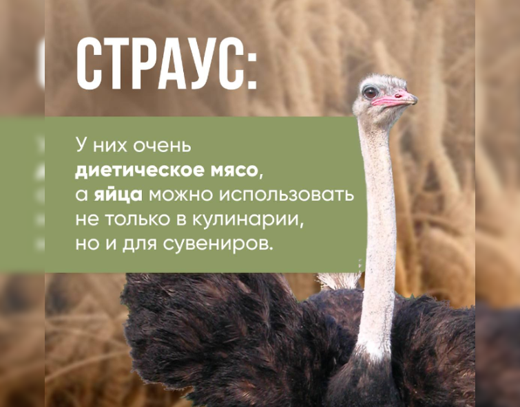 «Чистополье» уже занимается разведением индеек на птицефабрике, теперь стало известно, что на новых фермах появятся экзотические животные. В пресс-службе холдинговой компании объяснили, что, например, верблюжье молоко гипоаллергенно и богато питательными веществами. Что касается страусов, их мясо — диетическое, а яйца страусов можно использовать не только в кулинарии, но и для сувениров.