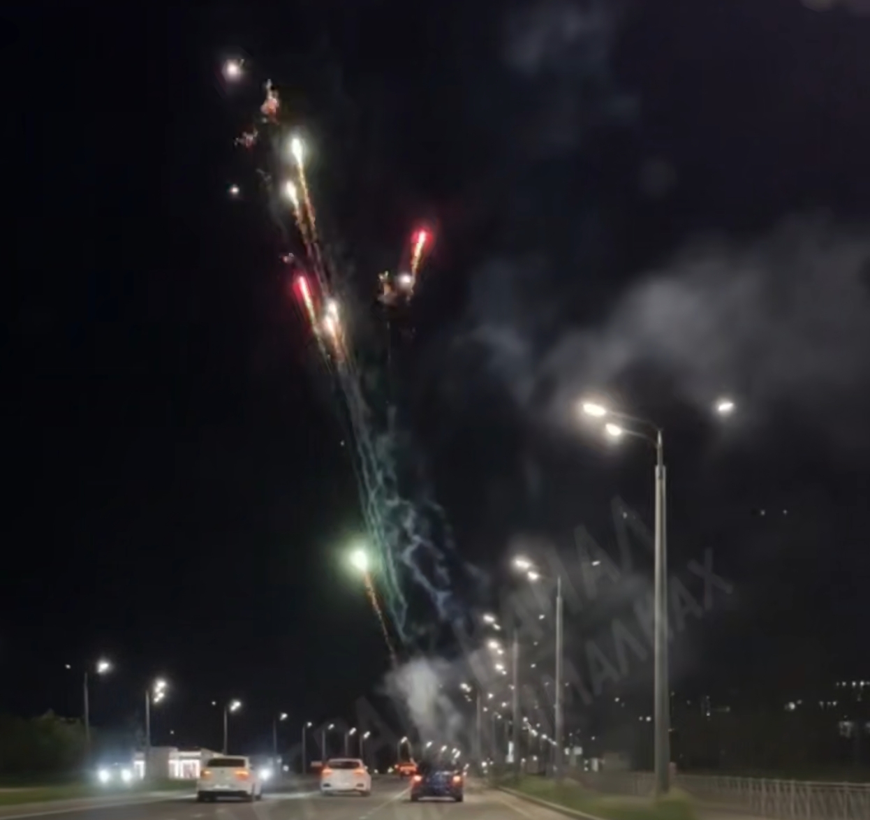 На кадрах, опубликованных в соцсетях, видно, что водитель на ходу пускает мощный салют прямо из салона автомобиля, движущегося по Вознесенскому тракту.