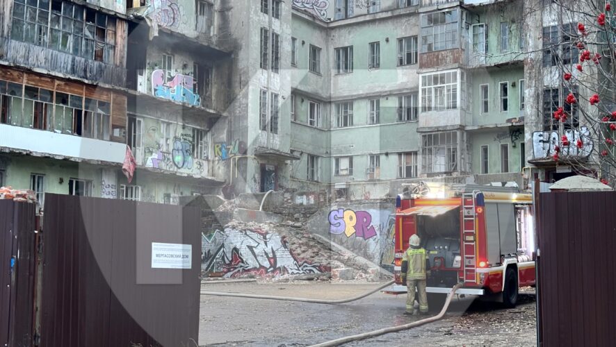 Пожар вспыхнул сегодня утром в Мергасовском доме в Казани.