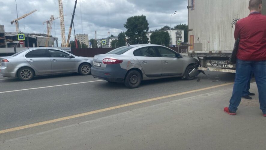 Предположительно, Renault Fluence не выбрал безопасную скорость и въехал в грузовой автомобиль. У легковушки серьезно пострадал кузов со стороны пассажира. Вероятно, водитель планировал перестроиться в крайний правый ряд, или повернуть направо, в сторону зоопарка, на улицу Хади Такташа.
