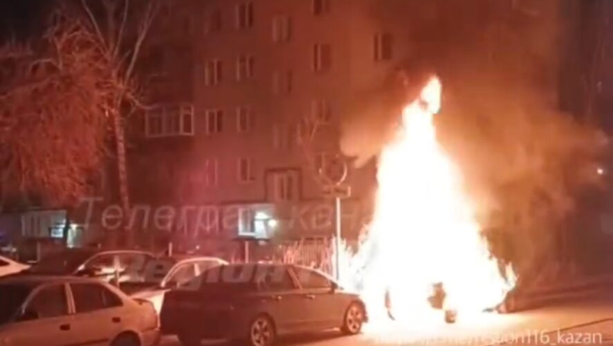Минувшей ночью в Казани загорелась легковушка. Огромное пламя, целиком охватившее автомобиль, сняли на видео очевидцы.