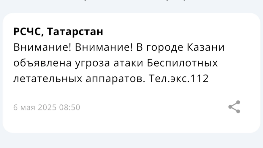 В Казани объявлена угроза атаки дронами по городу