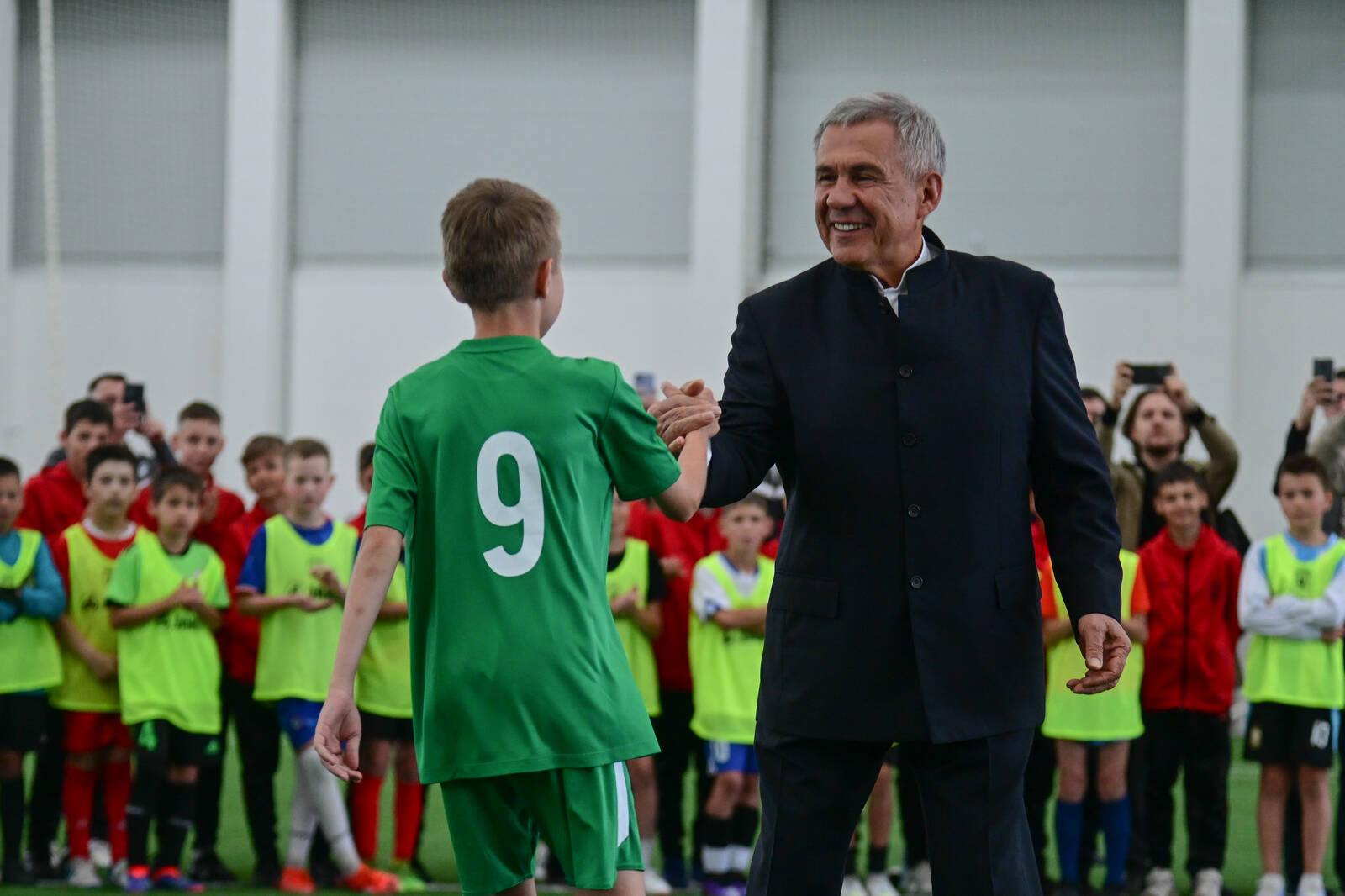В завершение церемонии Рустам Минниханов совершил символический удар по мячу и сфотографировался с юными футболистами.
