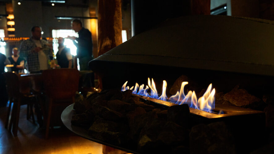Концепция ресторана строится вокруг огня: в одном из залов горит камин, в центре открытой кухни — печь, весом в несколько тонн, а в меню — крафтовый хлеб на монастырской закваске и стейки собственного вызревания.