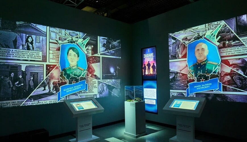 Экспозиция представляет СВО через призму человеческих судеб: каждый зал оснащен интерактивными экранами с оцифрованными новеллами о подвигах 33 солдат и офицеров, в том числе Героев России Константина Яшина, Александра Малова, Балдана Цыдыпова, Артема Жоги, Артура Орлова, Владислава Головина, Алексея Калмыкова, Максима Михайлова и других.