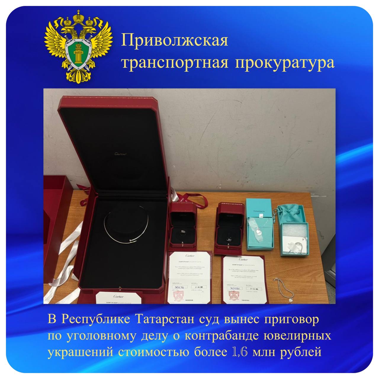 Ювелирные изделия были обнаружены во время таможенного досмотра. Все украшения изъяли. С учетом позиции государственного обвинителя от Татарстанской транспортной прокуратуры суд назначил виновной наказание в виде штрафа 300 тысяч рублей. Контрабандные драгоценности обращены в доход государства.