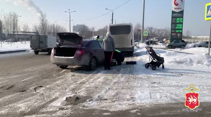 Сотрудники Госавтоинспекции Казани заменили пробитое колесо на запасное.