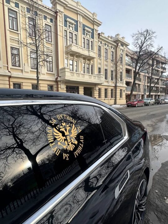 Автомобили премиум-класса с наклейками «За Путина» на стёклах заметили в центре Казани. Снять на видео новенький BMW удалось одному из жителей столицы РТ.