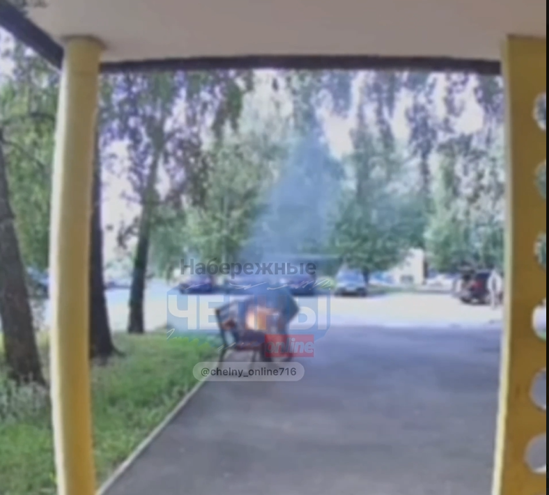Сегодня в 47-м комплексе Набережных Челнов, мужчина загорелся, сидя на лавочке. Видео с моментом происшествия опубликовали в социальных сетях.
