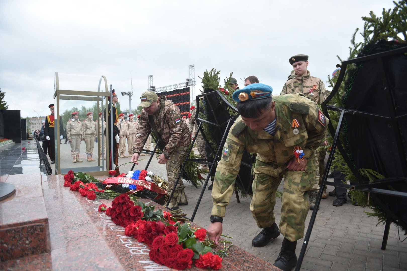 Перед парадом для пришедших на праздник выступил сводный хор лауреатов городского конкурса «Поющие Челны». Это хоровые коллективы образовательных учреждений №5, 34, 35, 60, гимназии № 57 и воспитанники детской школы искусств №7. Также на площади мемориала выступили кадетские школы.
