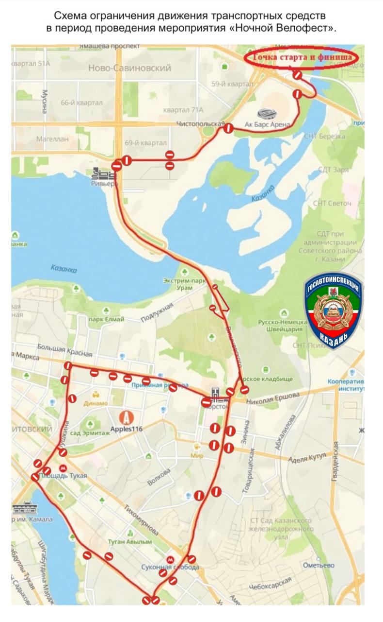 В частности, перекрытия коснутся участков проспекта Ямашева, Нижнего моста, улиц Чистопольская, Сибгата Хакима, Фатыха Амирхана, а также территории парковок рядом со стадионом «Ак Барс Арена» и мотошколой «BKE». Также будет ограничено движение на некоторых участках в центре города, включая улицы Пушкина, Островского, Горького и прилегающие дороги.