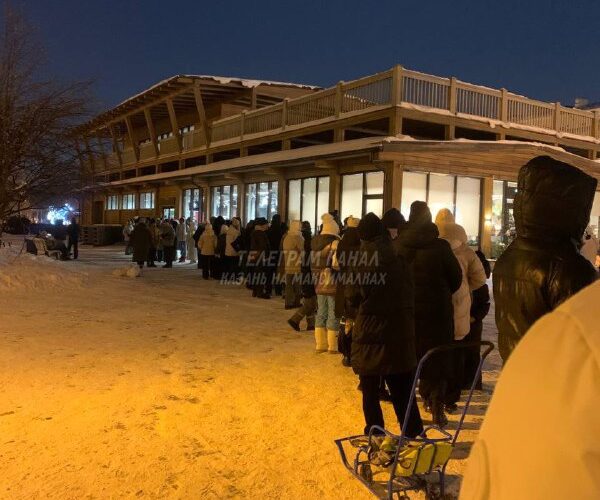 На кадрах, опубликованных в социальных сетях, видно, что в очереди находятся десятки человек – она тянется далеко от входа на каток.