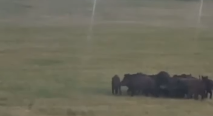 Сообщается, что животных заметили в селе Богородское. Свыше десятка диких свиней прогуливались недалеко от проезжей части и инфраструктуры поблизости и, кажется, совершенно не боялись проезжавших мимо автомобилей.