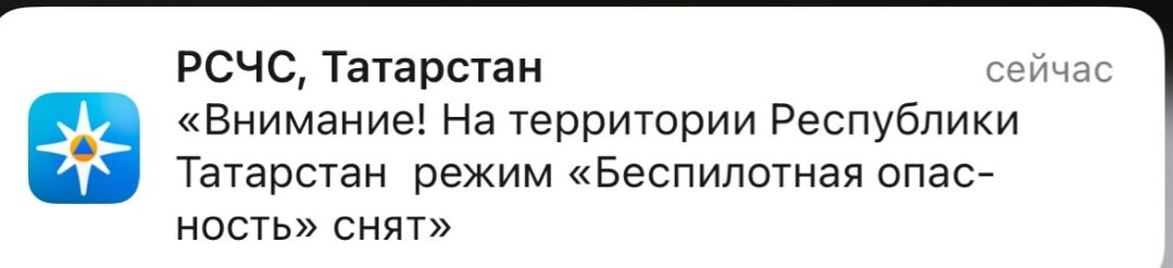 В Республике Татарстане отменили режим «Беспилотная опасность» спустя почти 15 часов. Об этом сообщает РСЧС РТ.