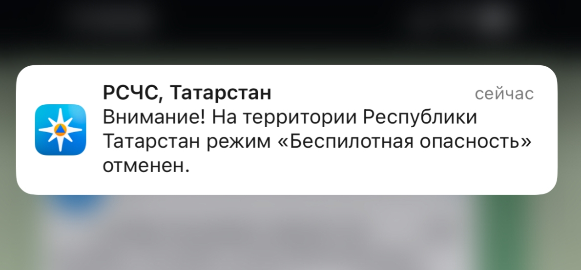 На территории Республики Татарстан отменен режим беспилотной опасности, сообщает РСЧС.