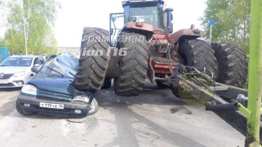 В Татарстане трактор раздавил легковушку