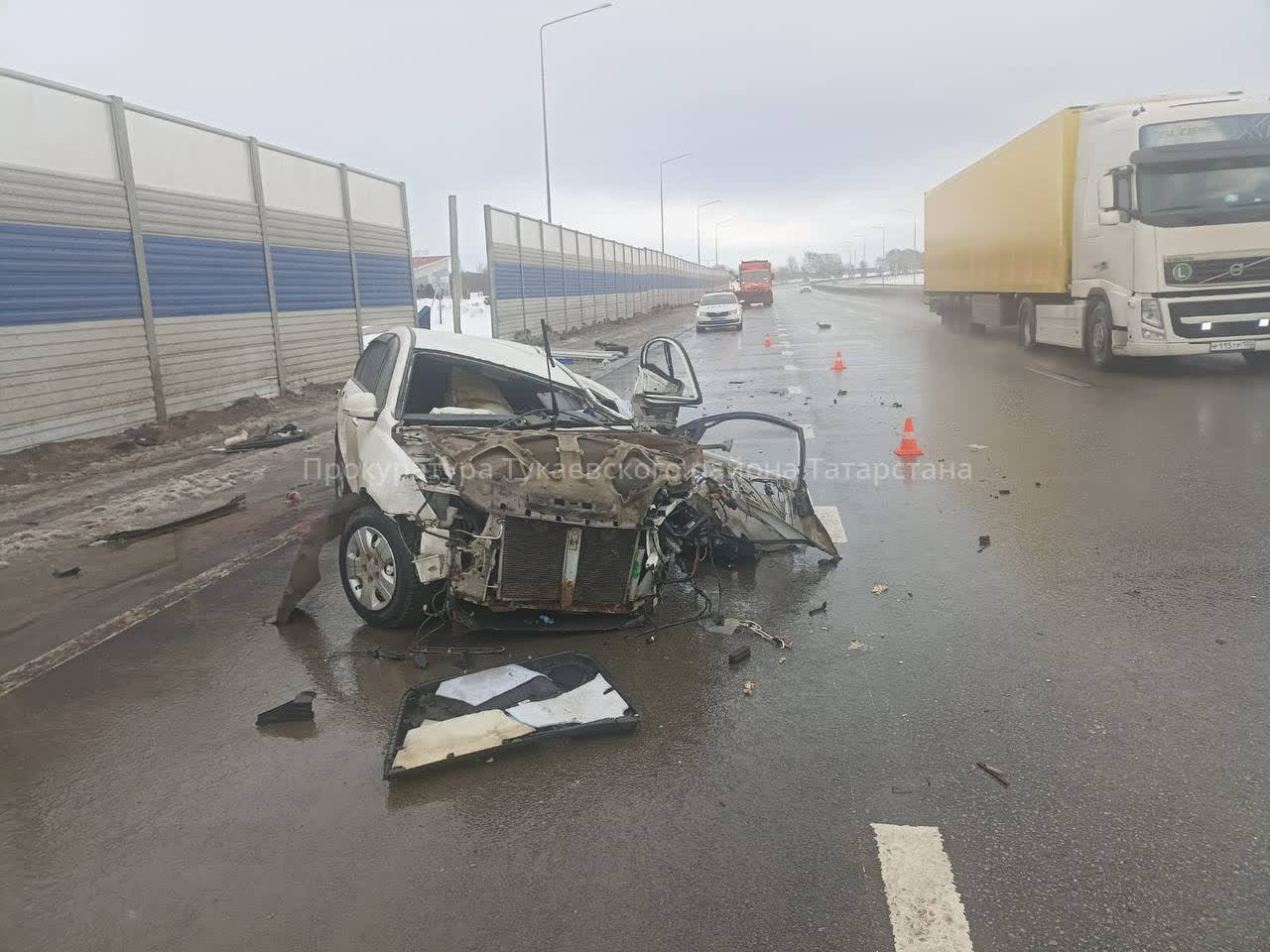 Сегодня на трассе М7 «Волга» в Тукаевском районе Татарстана произошло серьезное дорожно-транспортное происшествие. Автомобиль Geely врезался в шумозащитный экран на 1065-м километре трассы.