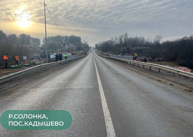 В посёлке Кадышево проезжую часть расширили на один метр, а тротуары с обеих сторон также увеличили. Кроме расширения, устроены укреплённые откосы, переустроены инженерные сети и установлено новое освещение.