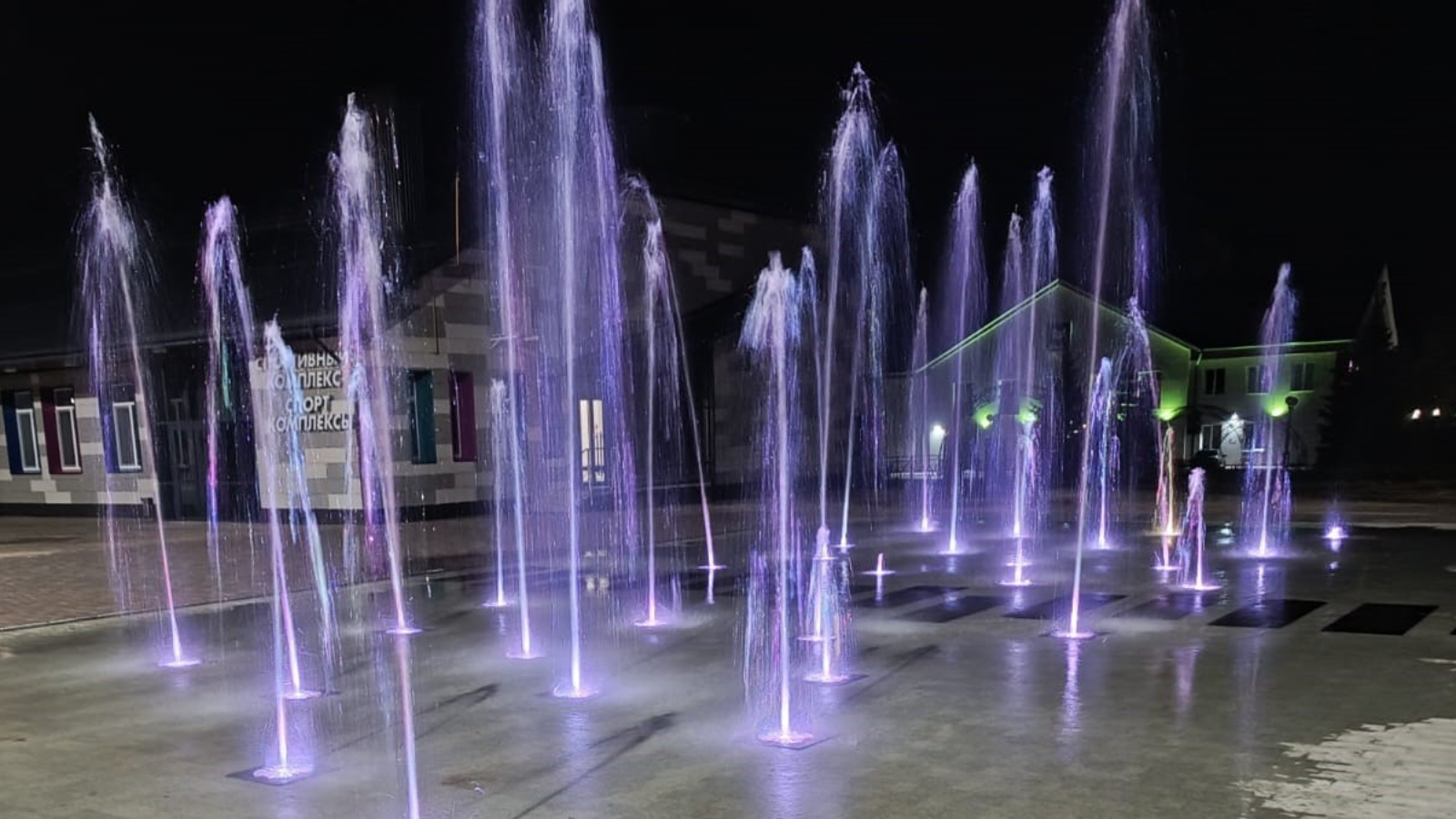 Строители выполнили укладку брусчатки и установили современный светодинамический фонтан.