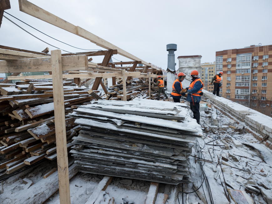 Одним из первых начали ремонт дома на улице Товарищеской, 28/70 в Вахитовском районе, где идёт замена кровли. Работы здесь, первоначально запланированные на 2029 год, были ускорены по обращениям жильцов. Подрядчик демонтирует старую стропильную систему для укладки современного покрытия и планирует завершить всё к марту, хотя ранее сроком был июль 2026 года.
