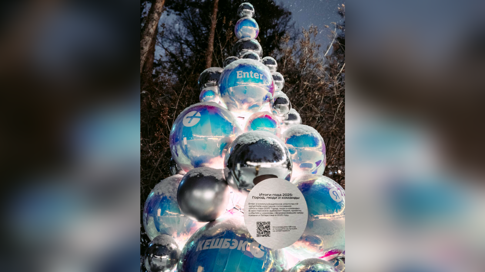 В преддверии премии «Итоги года 2025: Город, люди и команды» Казань украсилась уникальной новогодней елкой под названием «Вам светит счастье». Это творение можно увидеть в Лядском саду до 12 января. Этот особенный подарок для жителей столицы Татарстана сделали Enter, Яндекс Пэй и Дирекция парков и скверов.