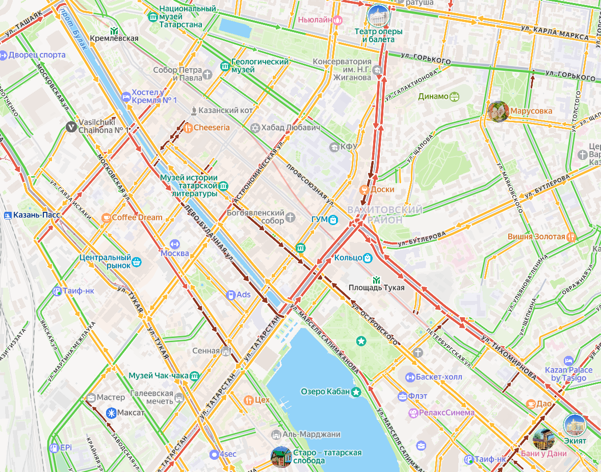 По данным «Яндекс.Карты» пробки в городе оцениваются в семь баллов. Особенно затруднено движение в центре на улицах Пушкина и Островского.