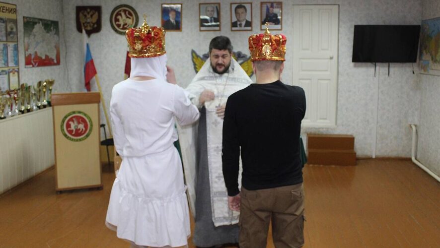 Первое Таинство Венчания в мензелинском следственном изоляторе №4 провёл иерей Роман Храмутичев. Священник много лет помогает осужденным не падать духом, проводит для них Таинсва крещения, причищает и навещает осужденных в церковные праздники. Таинство для супругов он совершил по всем канонам церкви — с белым платьем и венцом.