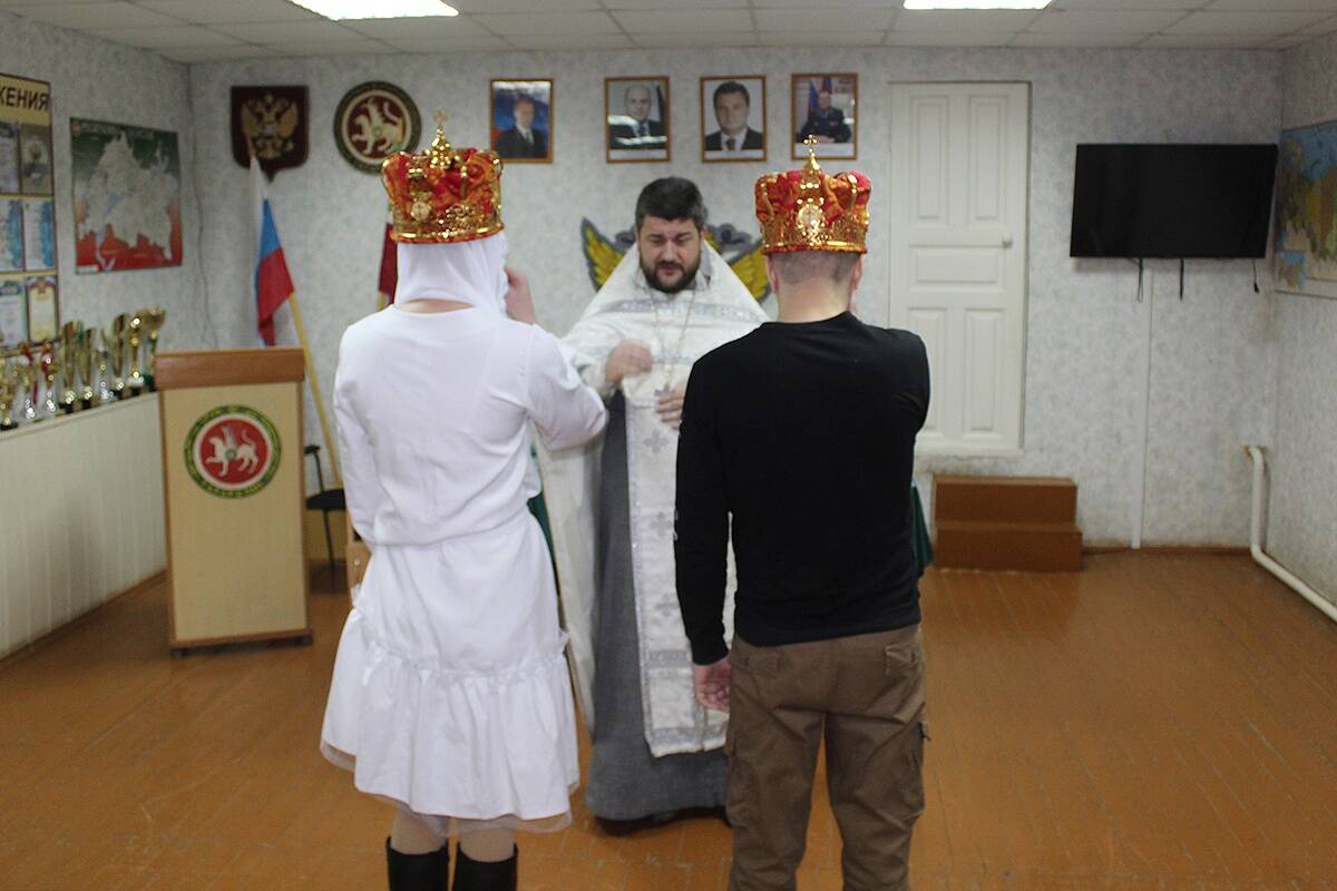 Первое Таинство Венчания в мензелинском следственном изоляторе №4 провёл иерей Роман Храмутичев. Священник много лет помогает осужденным не падать духом, проводит для них Таинсва крещения, причищает и навещает осужденных в церковные праздники. Таинство для супругов он совершил по всем канонам церкви — с белым платьем и венцом.