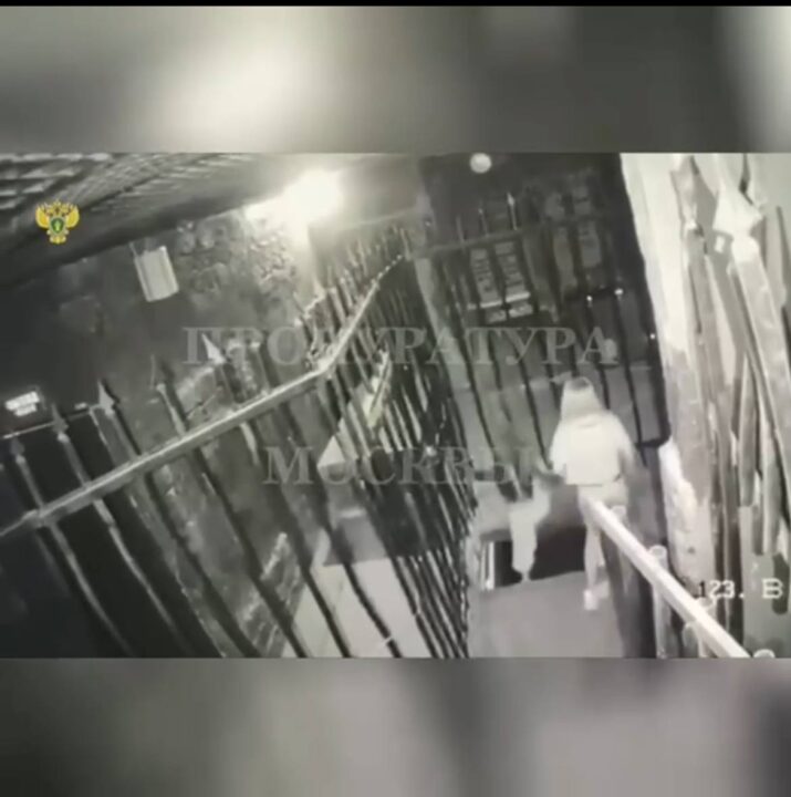 На кадрах видно, как девочка шла вместе с другим ребенком по помещению с высоким забором. Неожиданно открылся люк, после того как она на него наступила. Ребенок стремительно полетел вниз.