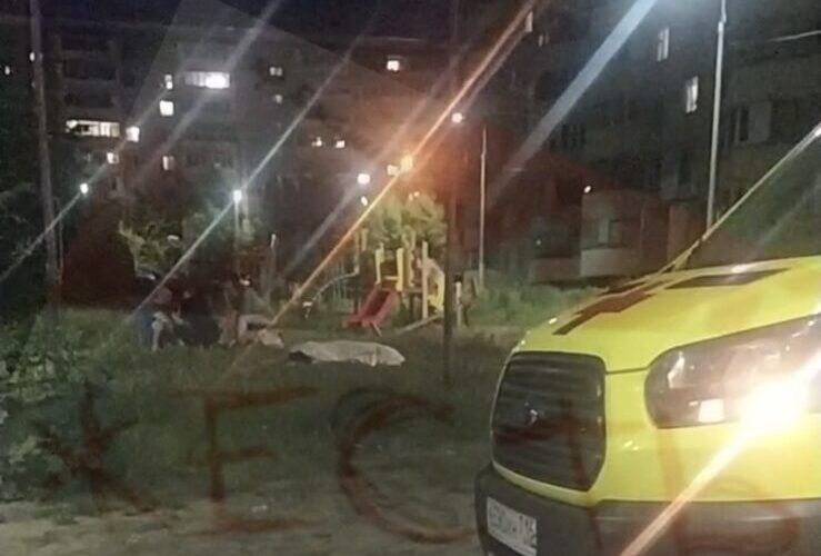 На кадрах видно, что место массового побоища огорожено лентой. На газоне лежит накрытый простыней труп. Неподалеку машина скорой помощи. Видно, что на месте трагедии работают правоохранители.