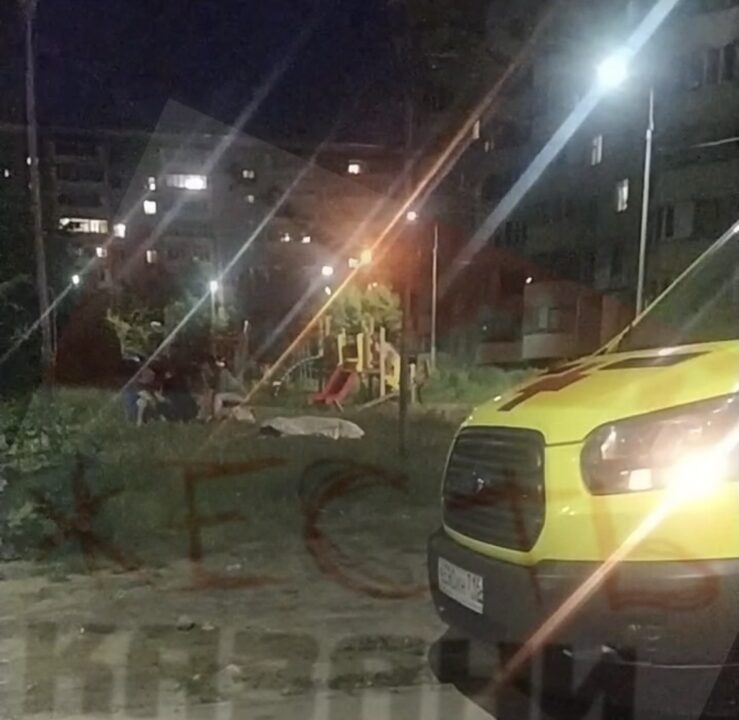 На кадрах видно, что место массового побоища огорожено лентой. На газоне лежит накрытый простыней труп. Неподалеку машина скорой помощи. Видно, что на месте трагедии работают правоохранители.
