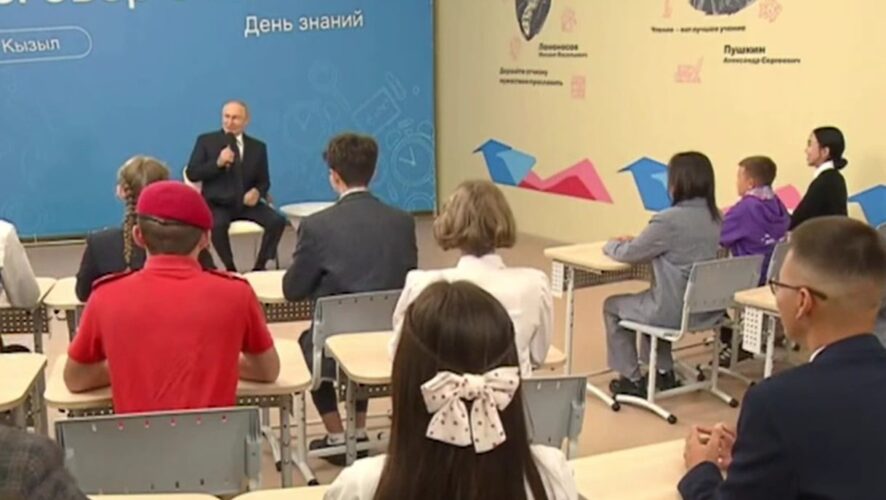 Президент России Владимир Путин провел урок «Разговор о важном» для учеников кызылской школы №20 им. Героев Отечества. Перед уроком глава государства осмотрел новое учебное заведение, которое открылось 2 сентября. Сообщили Kremlin.ru.