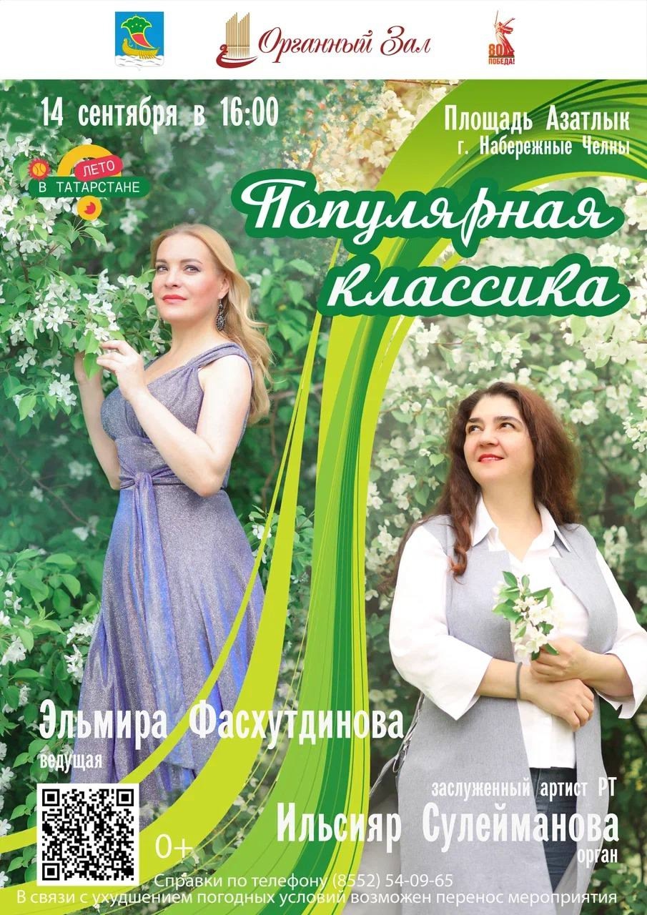 В 16:00 Органный зал представит концертную программу «Популярная классика». Также выступит заслуженная артистка Татарстана Ильсияр Сулейманова.