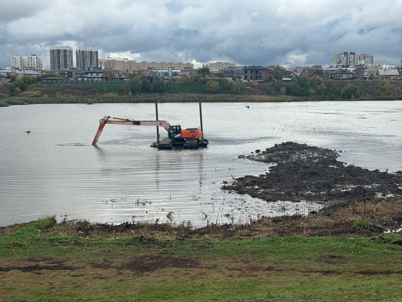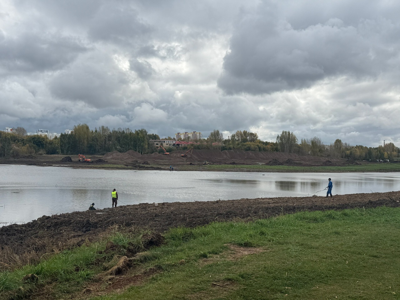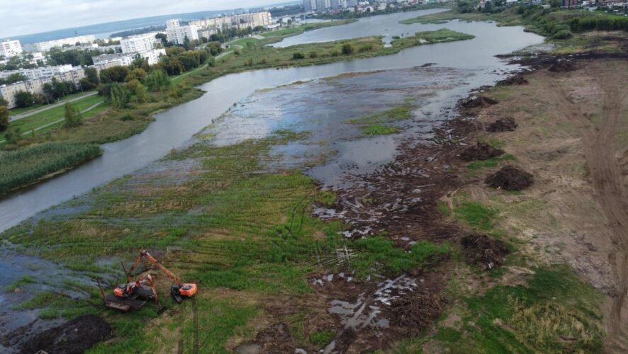 Второй этап очистки рассчитан на три года. В течение этого времени планируется полностью очистить русло, обозначить четкую линию суши и восстановить прибрежную зону. Сейчас специалисты срезают кустарники и мелколесье, убирают камыши, растительный слой, разрабатывают грунт. Также формируют будущие откосы береговой линии.