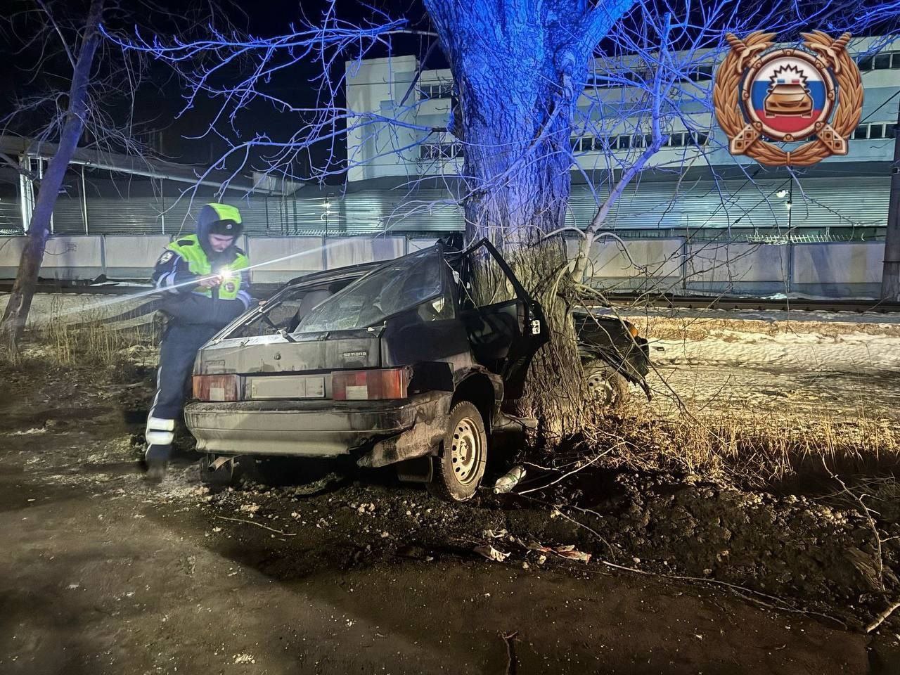 На видео, которое разместили пользователи в соцсетях, видно, что машина врезалась в дерево право стороной. Автомобиль сильно пострадал.