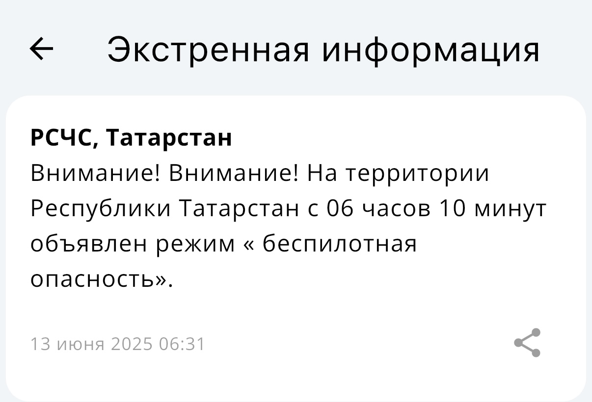 За эту неделю в Татарстане уже вводили режим беспилотной опасности. Кроме того, несколько раз закрывали аэропорты на прилет и выпуск судов.