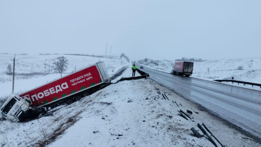 Сегодня, 7 марта, на трассе Казань-Буинск-Ульяновск произошло ДТП. По предварительным данным, водитель большегруза уснул за рулем и съехал в кювет в районе поворота на село Большие Меми. Об этом сообщает Госавтоинспекция Верхнеуслонского района РТ.