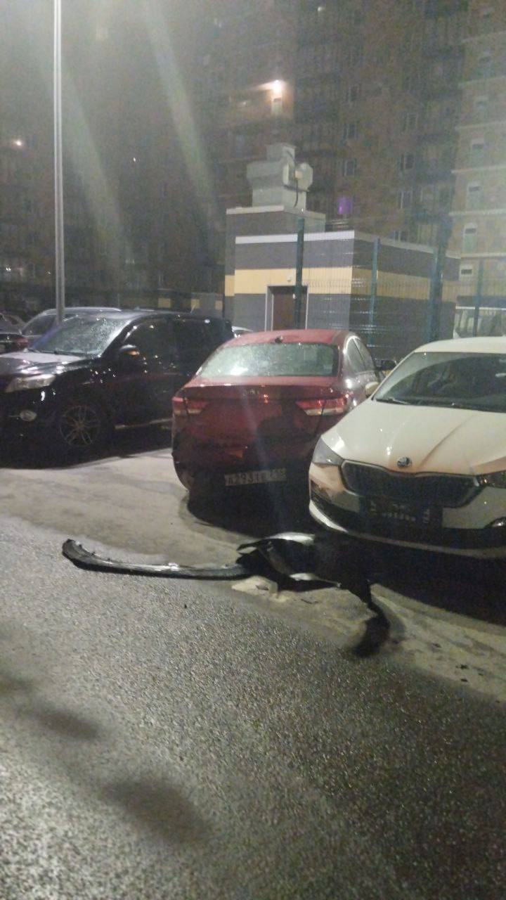 Как сообщают очевидцы, автомобиль, двигаясь без одной шины, протаранил два припаркованных легковых автомобиля во дворе. После столкновения водитель скрылся с места аварии.