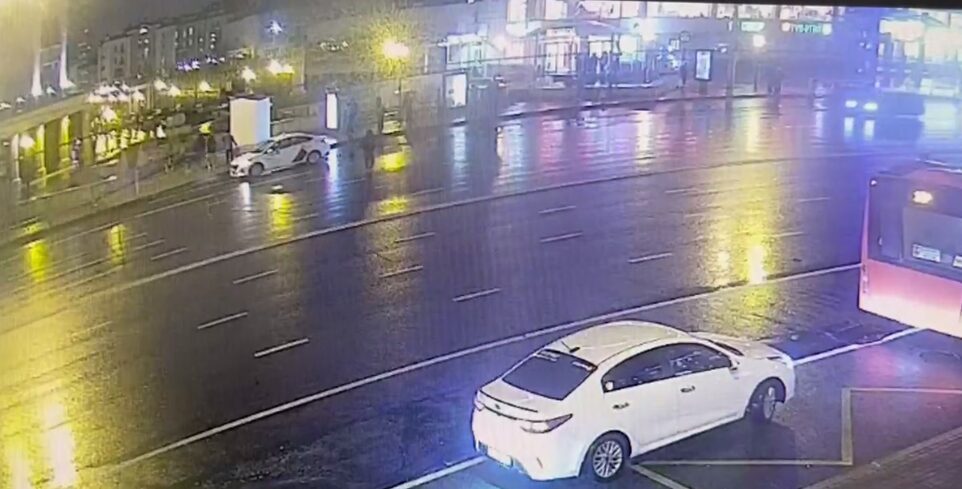 Инцидент произошёл в центре города, на улице Пушкина рядом с домом №4. Пешеход переходил дорогу в неположенном месте. На кадрах видно, как на полной скорости в него влетает Mercedes.