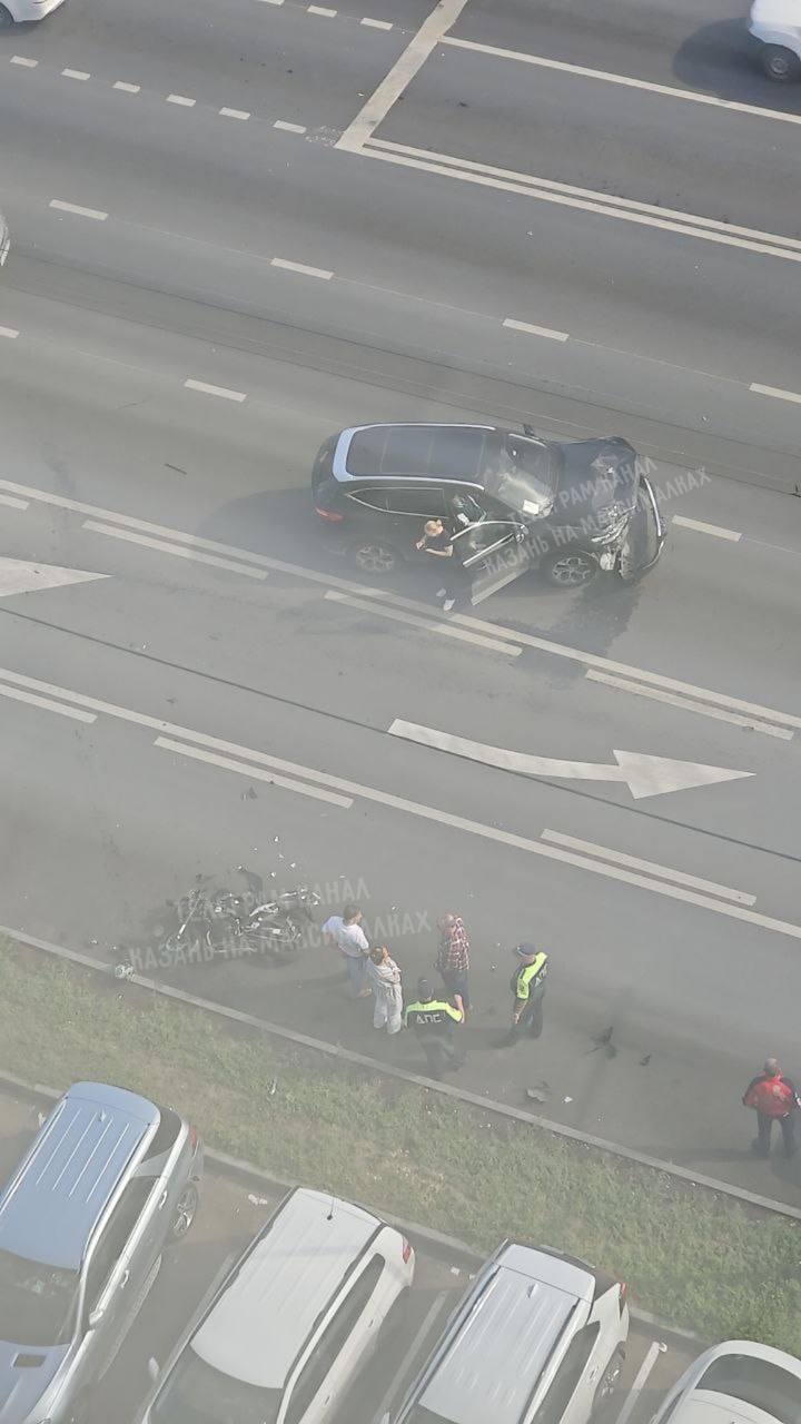 На кадрах видно, как байкеру помогают прийти в себя, его «железный конь» лежит на земле. Внедорожник, с которым столкнулся мотоцикл, получил серьёзные повреждения — от капота осталась лишь одна большая вмятина.
