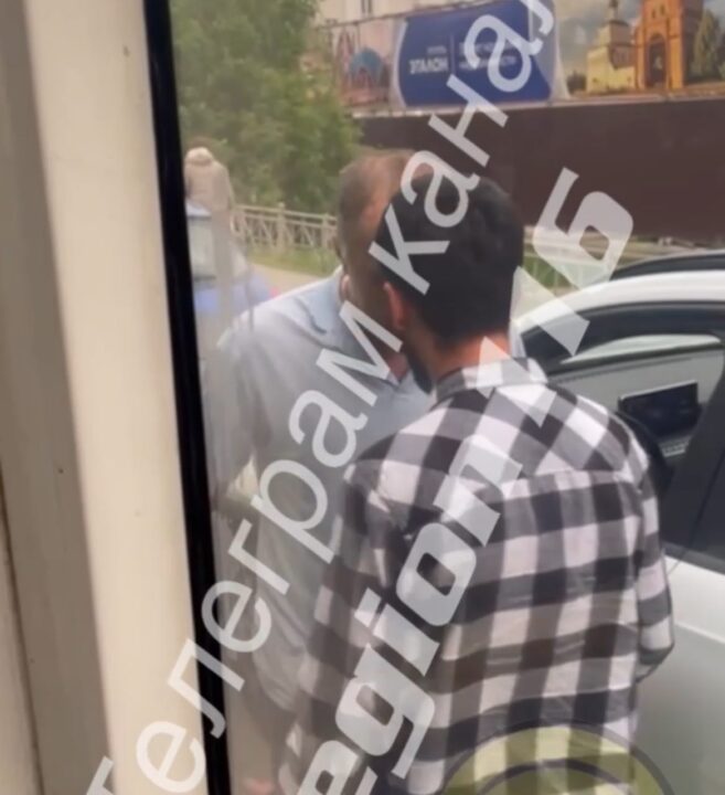 На видео, снятым очевидцами, попал момент разборок между мужчинами. Они громко что-то выясняли и толкали друг друга не только руками, но и лбами.