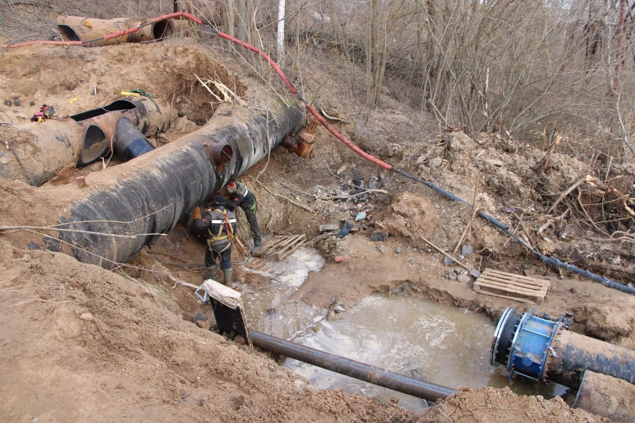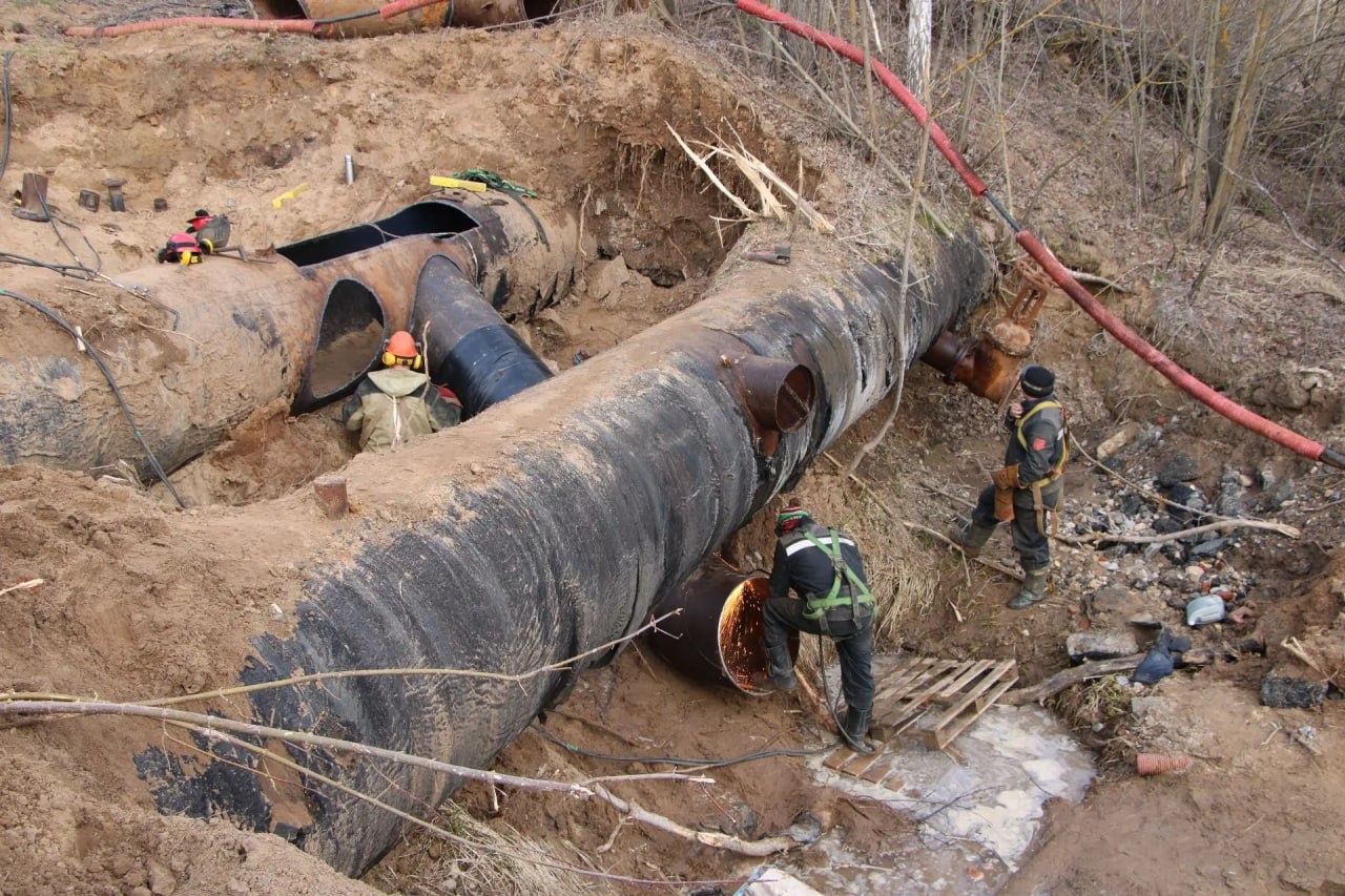 На объекте работала бригада Управления водопроводного хозяйства и спецтехника. Работы осложнялись высоким уровнем грунтовых вод.